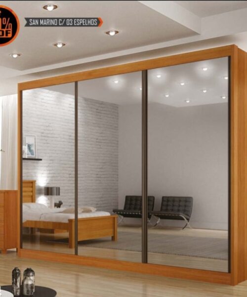 Guarda Roupa Casal San Marino 3 Espelhos 6 Gavetas 100% MDF/ Cor: Freijo